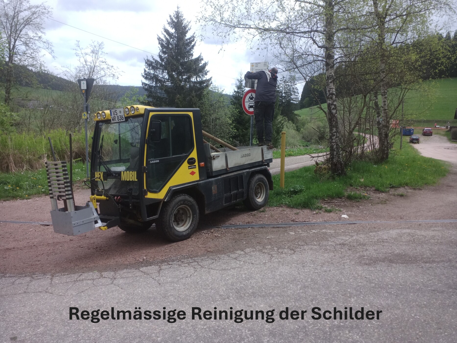 Zu den Arbeiten gehört neben den Kontrollfahrten und -gängen hauptsächlich das Reinigen und Freischneiden von Wegezeichen und Wegweisern. Es müssen immer wieder einige Wege und die 50 Ruhebänke in unserem Bereich ausgemäht und teilweise von Geäst befreit werden.